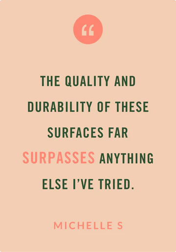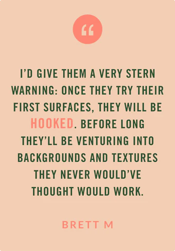 Each Surface was hand-designed by our unusually passionate founder, Mandy. You’ll get the perfect amount of grain in your marble, textures that look truly 3D, and trend-setting limited releases.