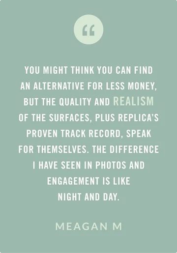 Our customers’ biggest regret? “I tried DIY and less expensive backdrops first. Total waste of time and money. Go with Replica the first time.”